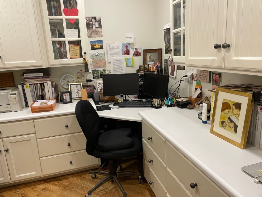 We were up early after a very short night. John started packing last night after the last of our visitors and phone calls ended (after 10:30 p.m.). I said farewell to my clean office and waved at the rogue pumpkin as we drove away from our beloved home for the next 18 months. Aaron will take good care of things here.