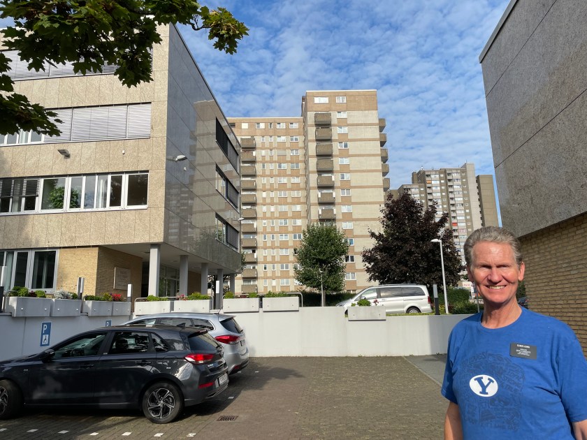 The Frankfurt Stake Center is next to these Area Offices. This stake was organized in 1976. The Frankfurt 1st Ward and the 2nd Ward (International, English) meet here each week. The Frankfurt Mission missionaries use this building for many of their meetings and we hear pickleball is often played here on Friday evenings by the senior couples!