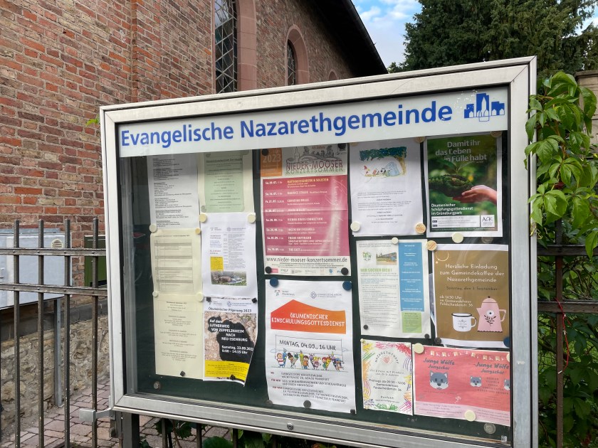 Along the main street we saw some beautiful old half timber homes and these colorful ones. Each home is unique. There are also many apartment buildings in our neighborhood, many built after WWII for displaced persons.