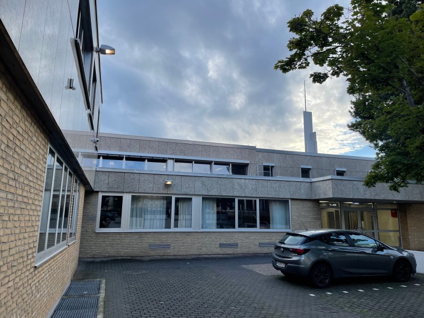 This is the back of the Stake Center. Stake Conferences are not held here, however, because there are not enough parking places (only 47). Stake Conferences for the Frankfurt Stake are held in the Darmstadt building. But this building is well-used by members and missionaries. Two wards meet here each week.