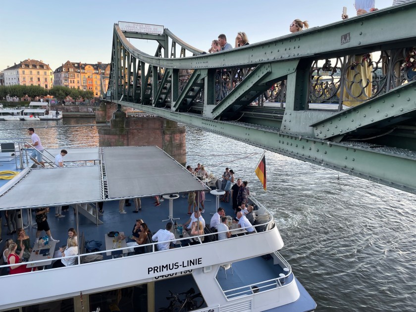 After a full day at the office, we had our next culture lesson from the Garbers–a trip on the U-Bahn into the heart of Frankfurt. The U-Bahn is a train that can run above or below ground.