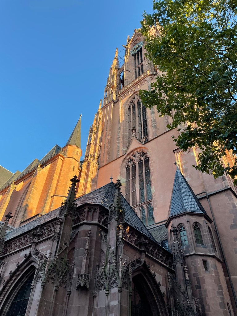 The Imperial Cathedral of St. Bartholomew in Frankfurt am Main , the largest sacred building in the city, is the former election and coronation church of the Roman-German emperors and as such an important monument of imperial history. In the 19th century in particular, it was considered a symbol of national unity. The cathedral was a collegiate church from 852 to 1803 , but never a cathedral in the canonical sense of a bishop’s church.