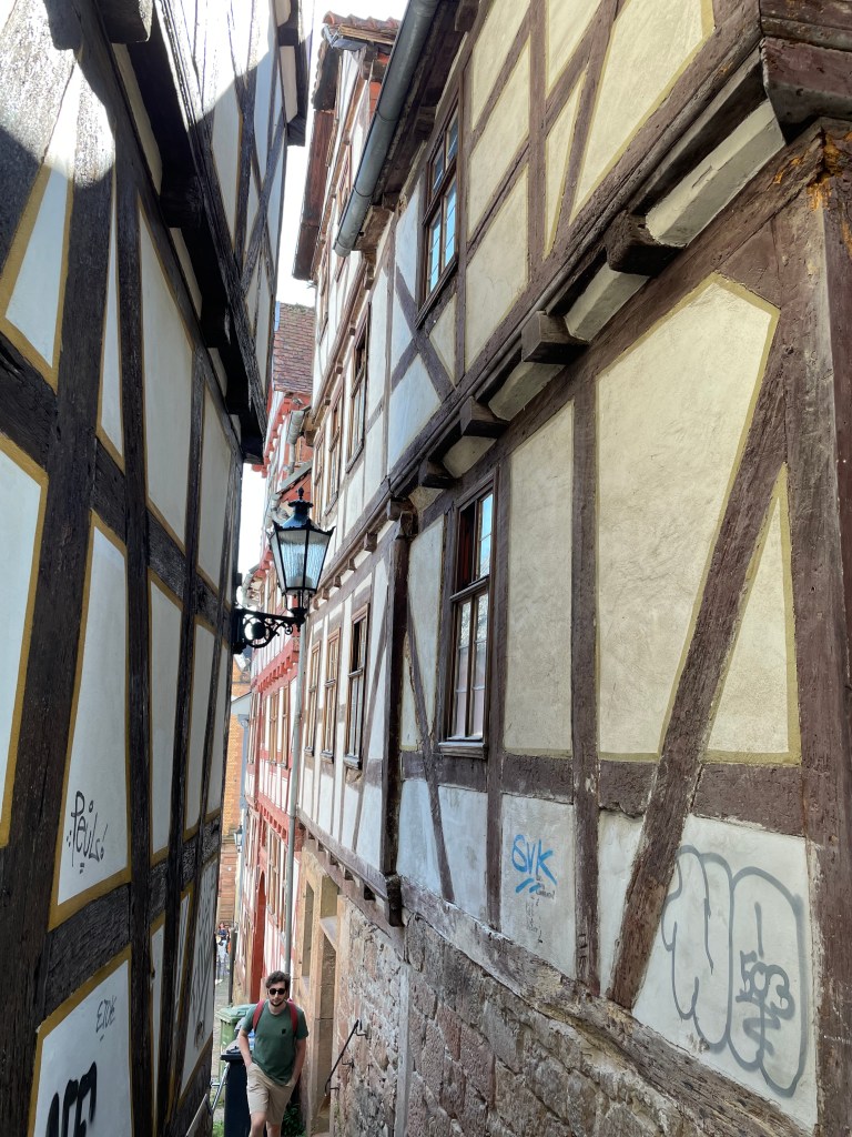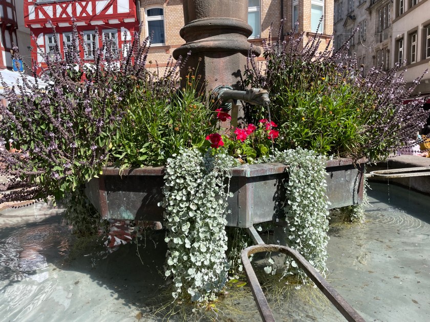 The homes in the square are historic half-timbered houses dating back to the 1300-1700s. The stone home below is the oldest of them all, built in 1318! This town was spared destruction during the war, thank goodness!