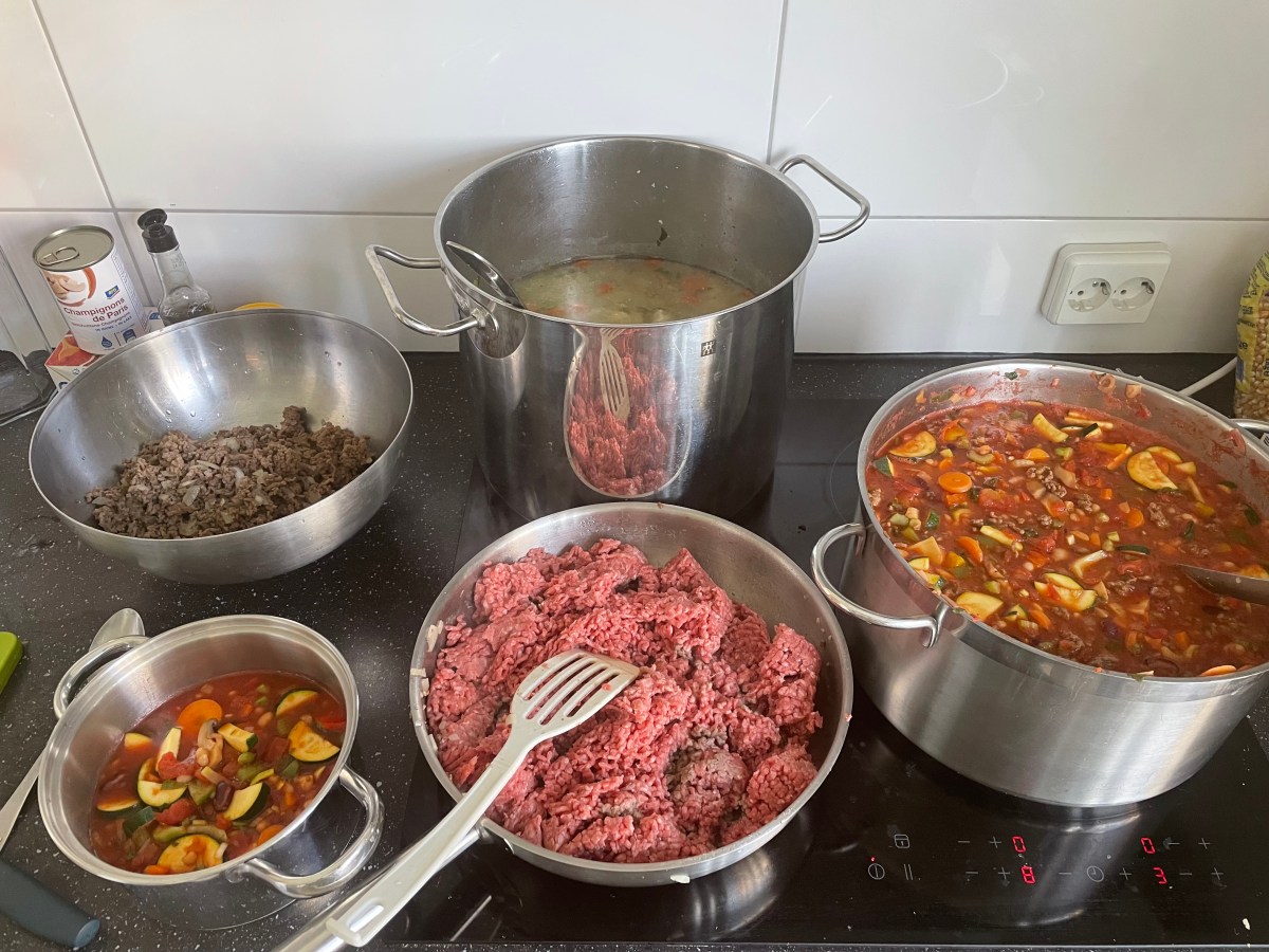 I stayed home today to prepare food for our international guests coming to the seminar. It was a cozy sort of day, with 2 big pots of soup simmering on the stove. I made chicken vegetable soup and Hearty Hodgepodge, two of my favorites, enough for 30 people, and also one small pot of vegetarian. This was my kind of day.