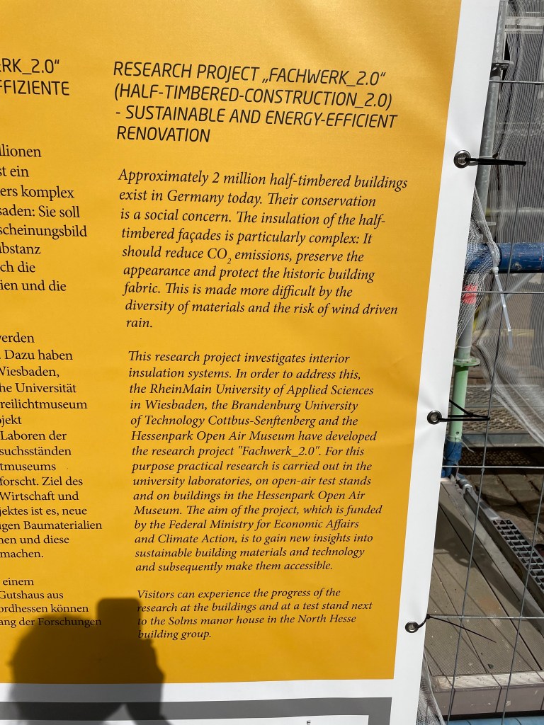 This is the plaza, or village square with some shops and restaurants for the many visitors. Below is some interesting information about the half-timber homes and buildings found throughout Germany, and reconstructed here. In the outer parts of this park were dozens of covered piles of half-timber longs, numbered and catalogued for future reconstruction.