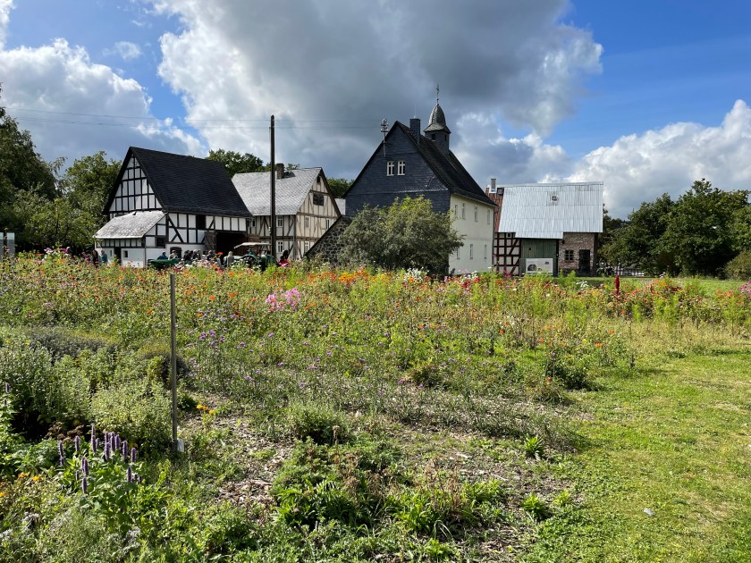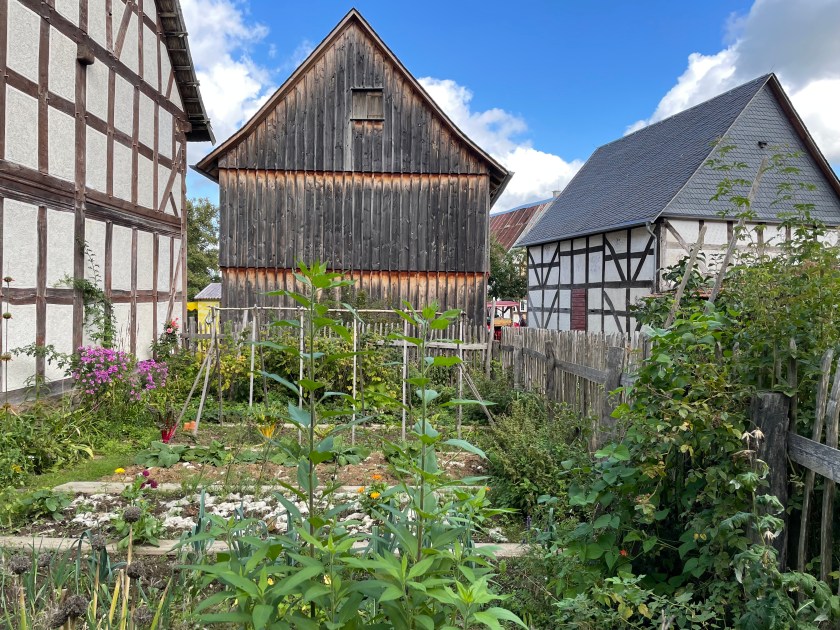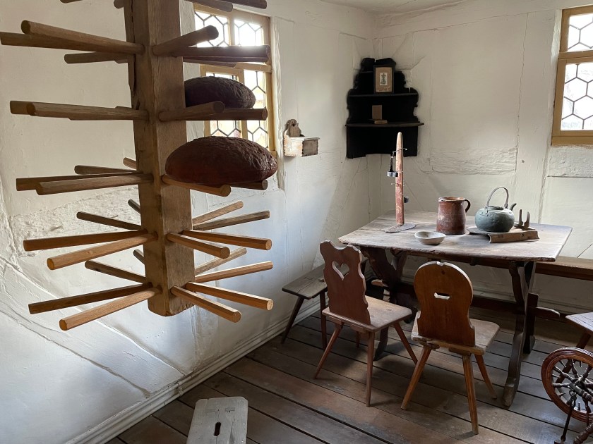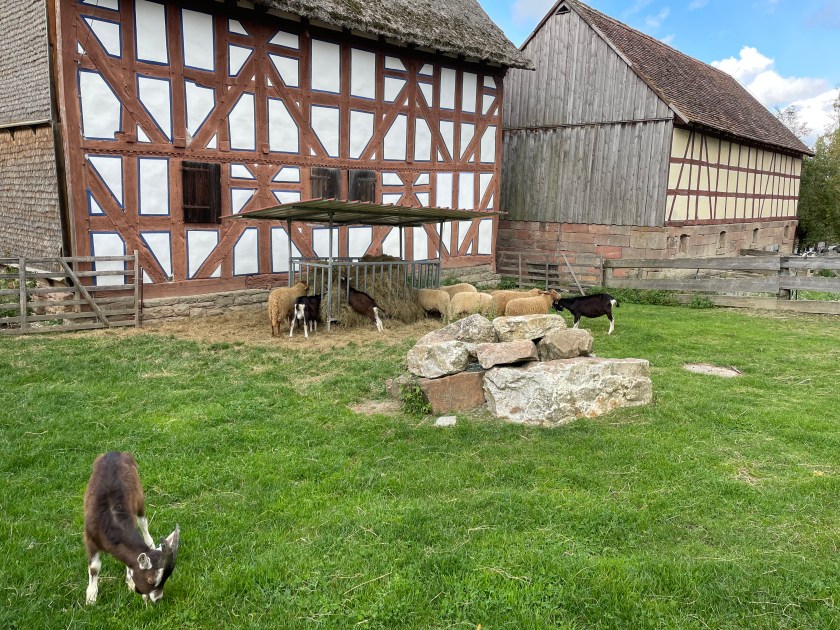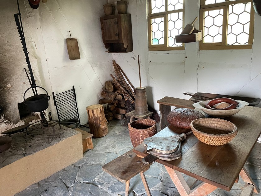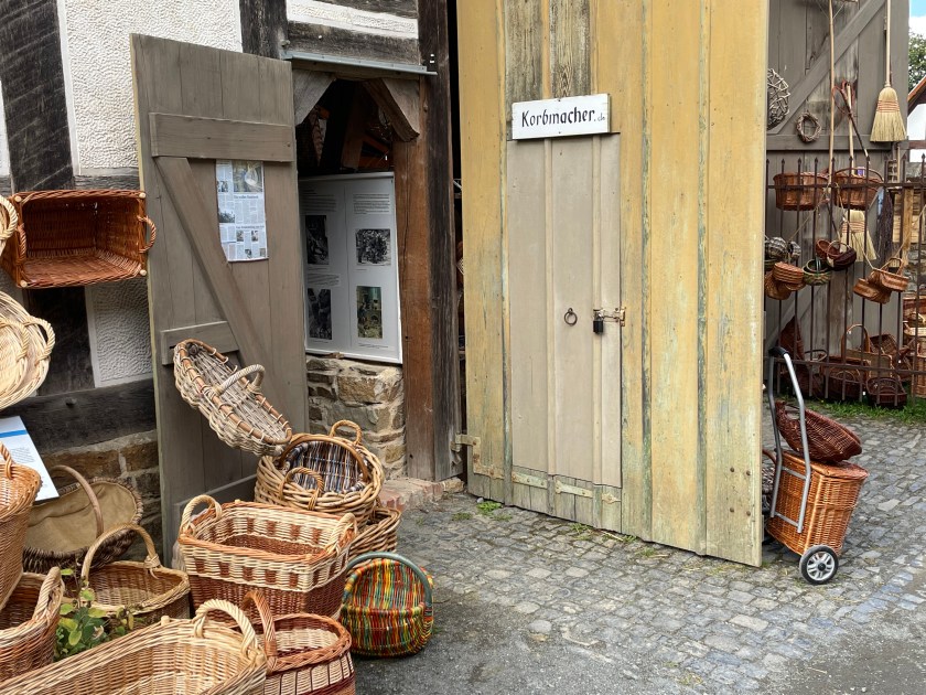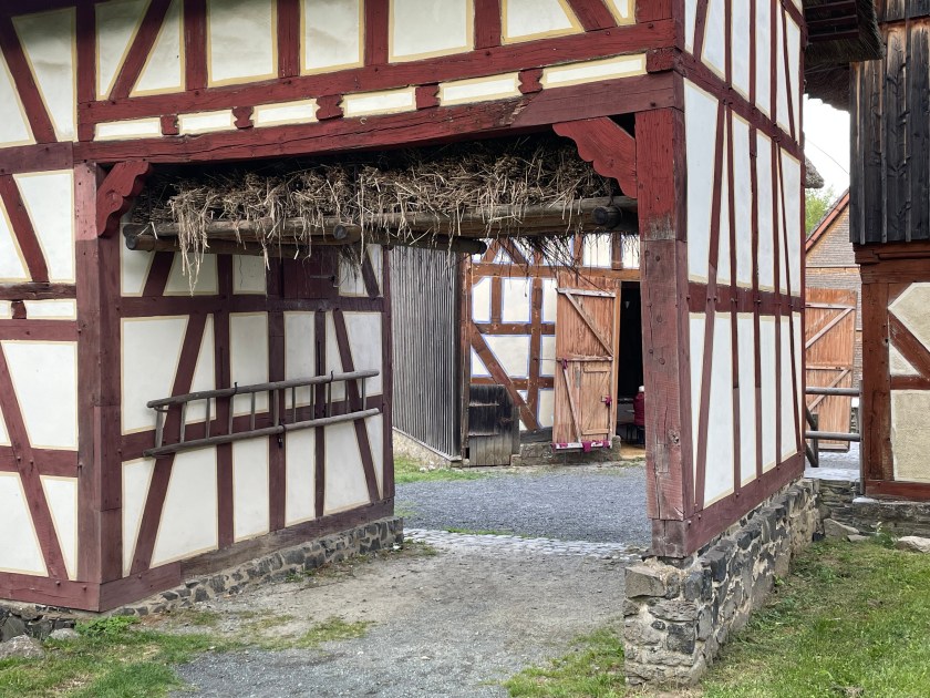 Hessenpark will probably be one of my very most favorite places to visit while we’re in Germany. I took photos of everything I wanted to remember and look at again because it’s in places like this that I get a real feel for the daily life of my ancestors, who I love. I’ve studied their lives from church books listing births, marriages, and deaths, and I know who they are, but places like this SHOW me HOW they lived. The 100+ buildings in this living museum are from this area, carefully documented, deconstructed, brought here, and reconstructed. They are put together here as if they were a village from long ago. Everything is authentic, but not in its place of origin. Visiting here gives us a good feel for the past and how people lived. Please pay attention to every detail, and you will feel as if you’ve stepped back in time.
