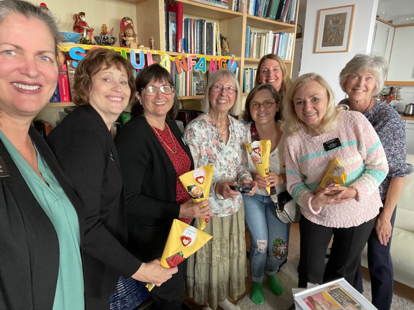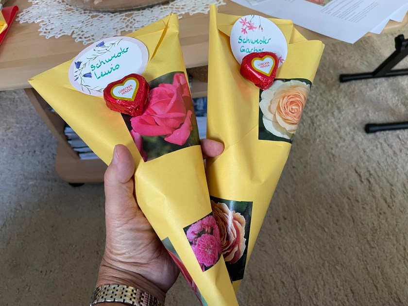 Today in our Tuesday German Class, Frau Enger taught us back-to-school traditions. She is such a delight! When a child begins first grade here, they’re sent off to school with a special cone prepared by their mother. The cone is filled with little school supplies and treats to make the first day of real school a little bit easier.
