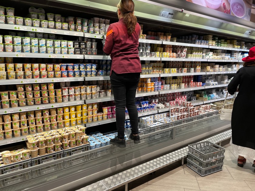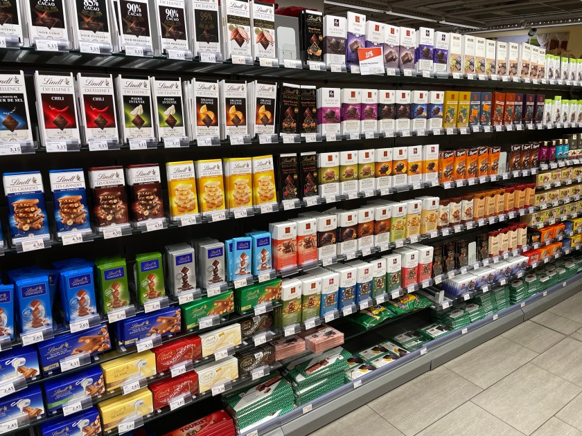 In Swiss and German grocery stores, the chocolate and yogurt aisles are large and full.