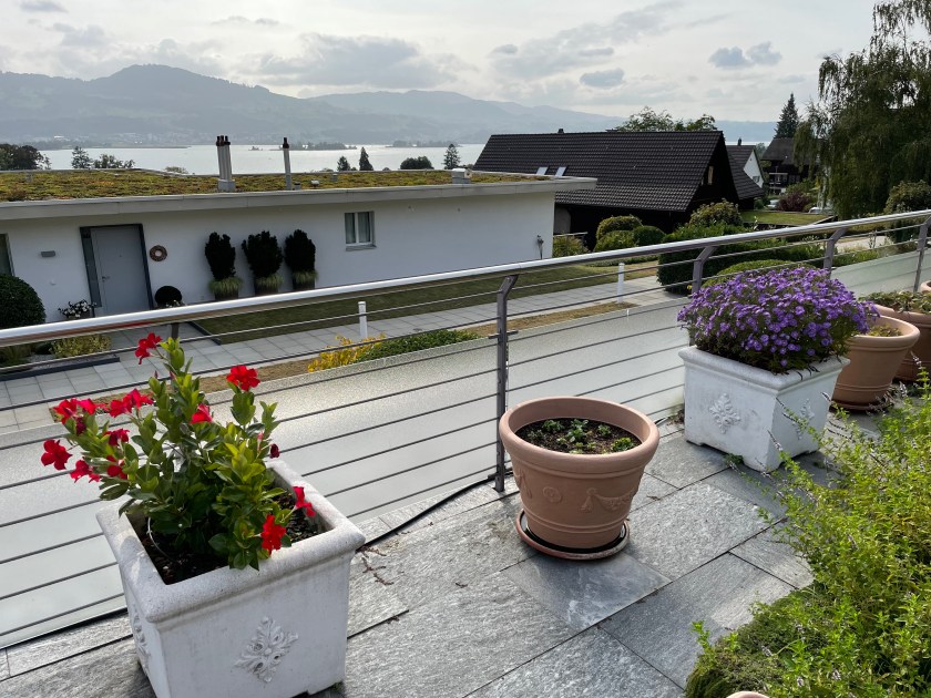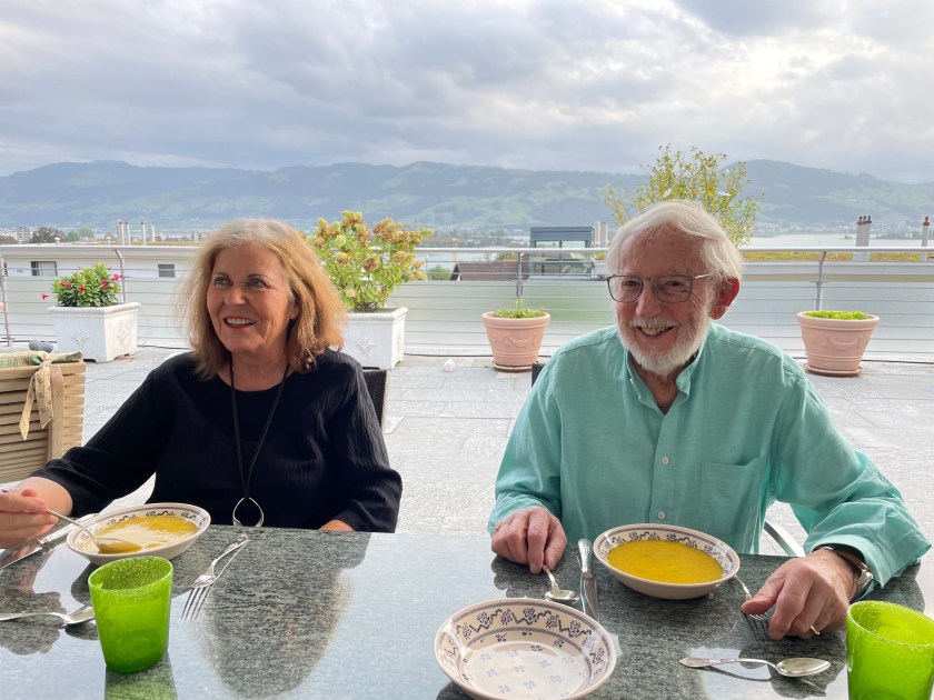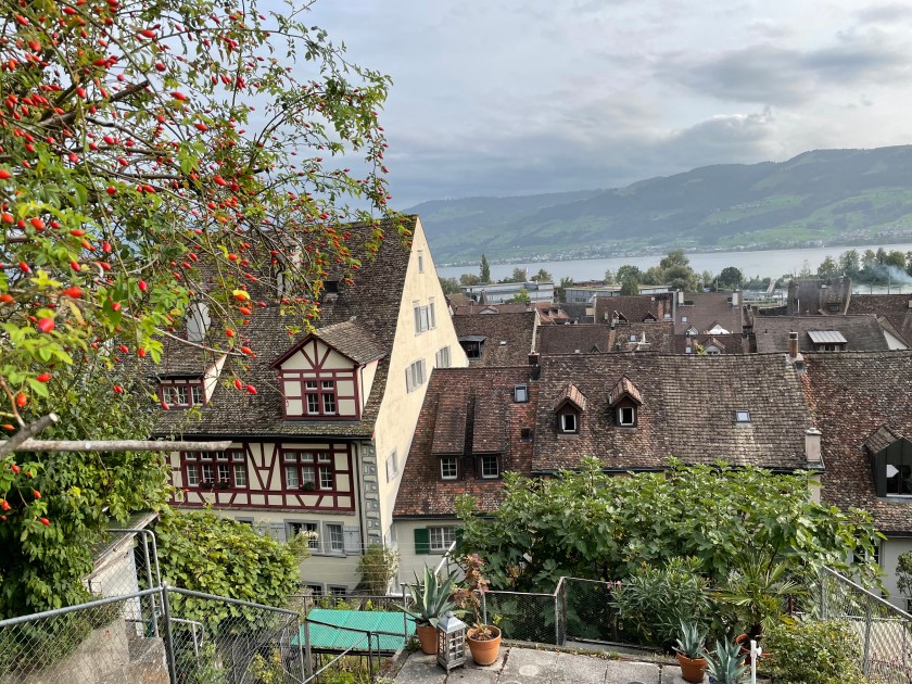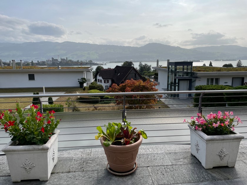 After about 25 or more years of visits from Katharina, Racko and now Franz in Utah, we are finally here visiting Them! Oh, happy day!! We drove about an hour from Wintertur to Rapperswil-Jona by the Zurich See (lake). This countryside is breathtaking.