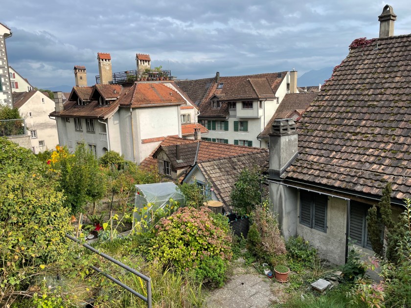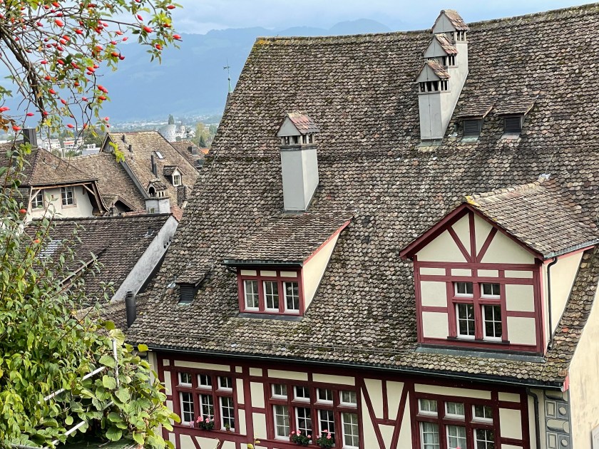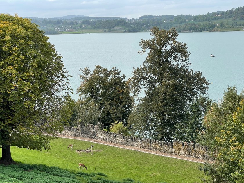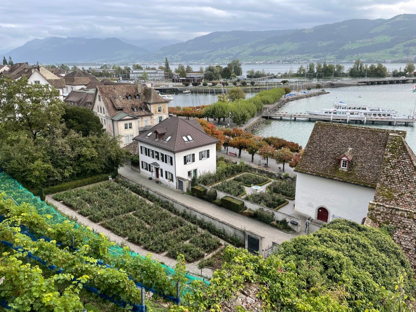 Rapperswil is on the northern shore of Lake Zürich at the point where the lake is cut in two by an isthmus. Part of the old town, the castle and monastery are situated on the peninsula where we went walking.