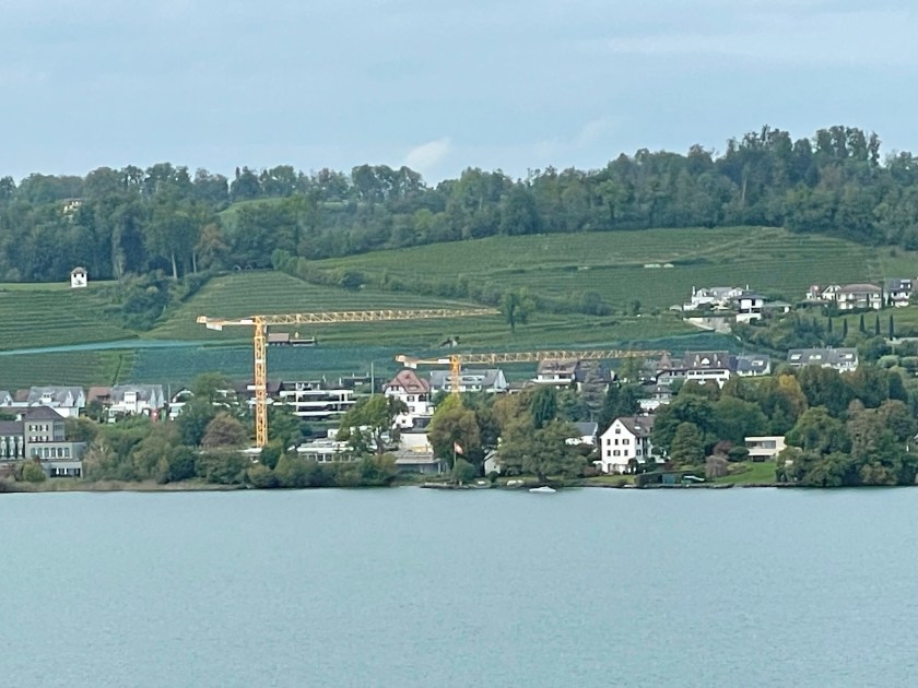 Now this is important. See the 2 yellow cranes across the way? That’s where Roger Federer is building his home.