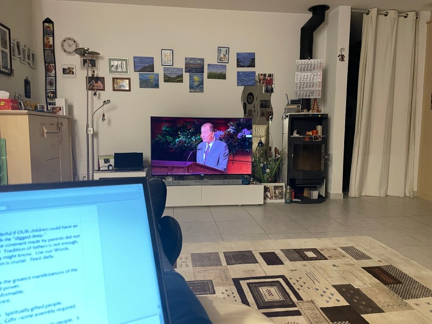 After dinner we settled in to watch General Conference. What a perfect day. And it wasn’t over yet. After a good visit discussing what we learned from the speakers, we drove back to Wintertur in time for the Saturday afternoon session (on at 10 p.m. here). Then we headed to bed, full and fed in oh, so many ways!