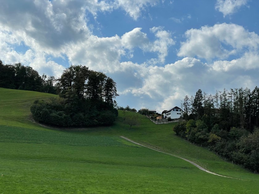 From my journal: From Zollikofen we drove about an hour through farmlands and towns, winding up into some mountains with towns on hillsides and in valleys. We were on our way to find Hölstein, the birthplace of my 3rd Great-grandmother, Elizabeth Degen. I was feeling excited all the way, more and more so as we got closer and closer. Holstein is in Basel land, up high in the mountains. All was green and fertile.