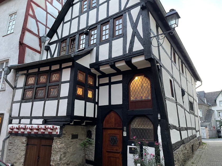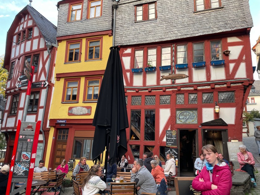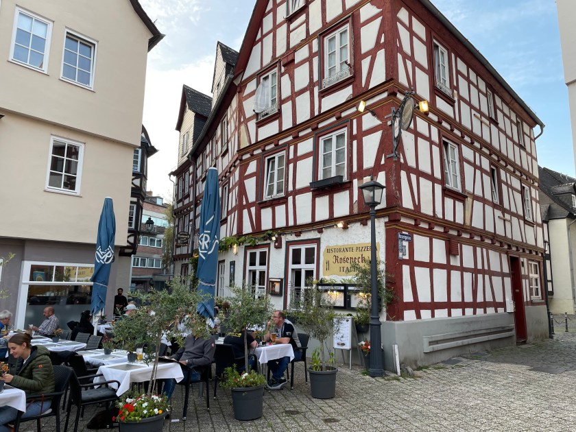Oh, my it was beautiful! We wandered through the beautiful narrow streets around the town square. The homes there are almost all half-timbered from the 1600-1700s. Most of these old homes have been converted into interesting shops and cafes with traditional outdoor seating. Everything smelled delicious!