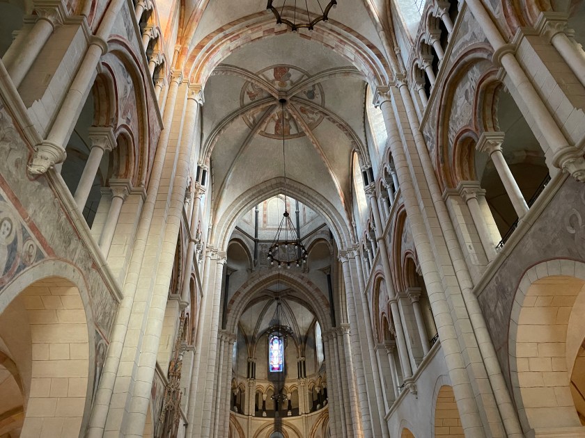 It was so colorful, with painted stonework, but inside was simple and monochromatic, ethereal and peaceful.