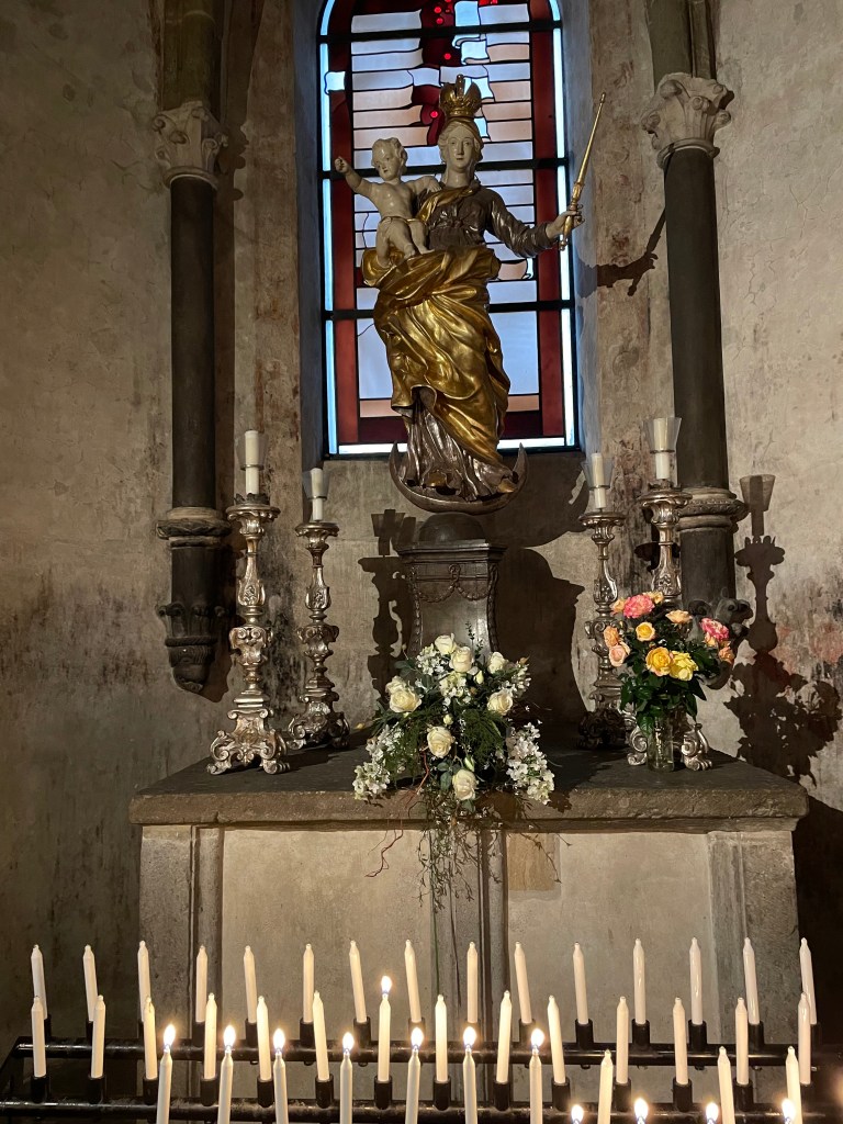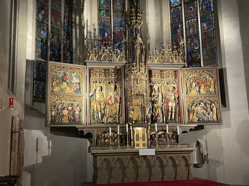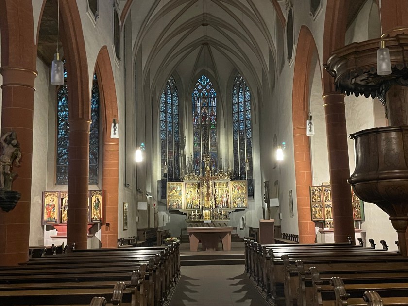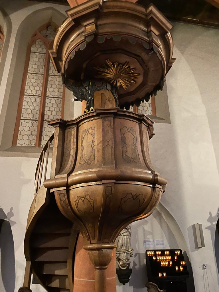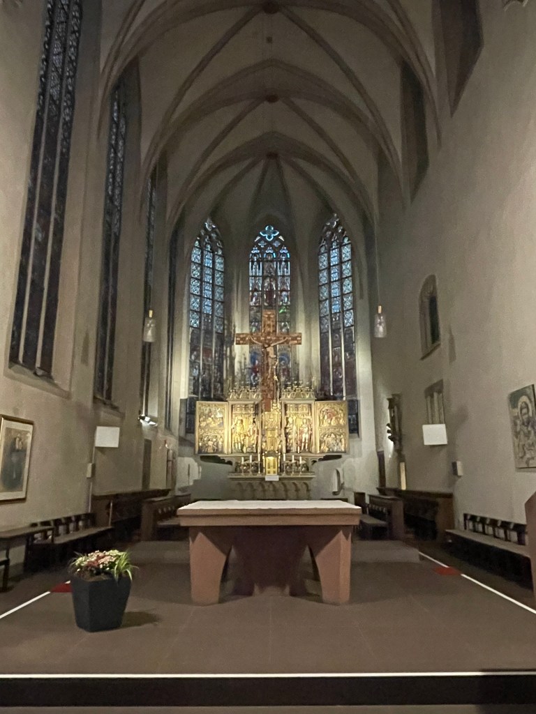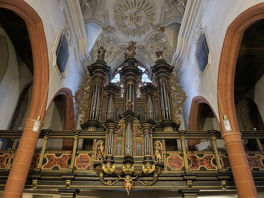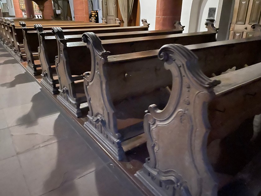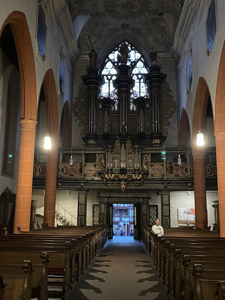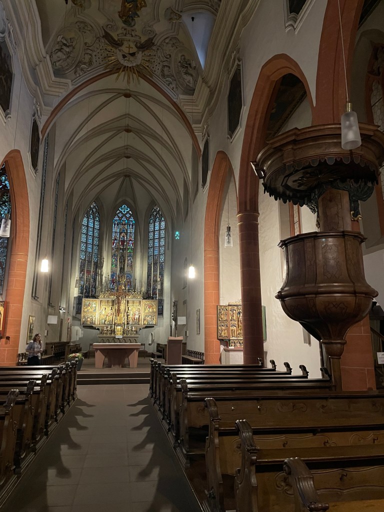 We came to another old church–St. Sebastian. This church was probably built at the beginning of the 14th century by Franciscans, rebuilt in 1742 in baroque style. The Franciscan monastery was closed in 1813 as part of secularization . The church was taken over by the state and declared a city church in 1820. Since 1827 it has belonged to the then newly established diocese of Limburg .