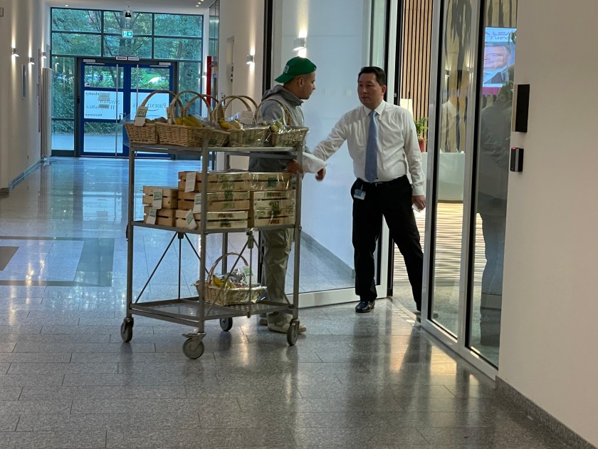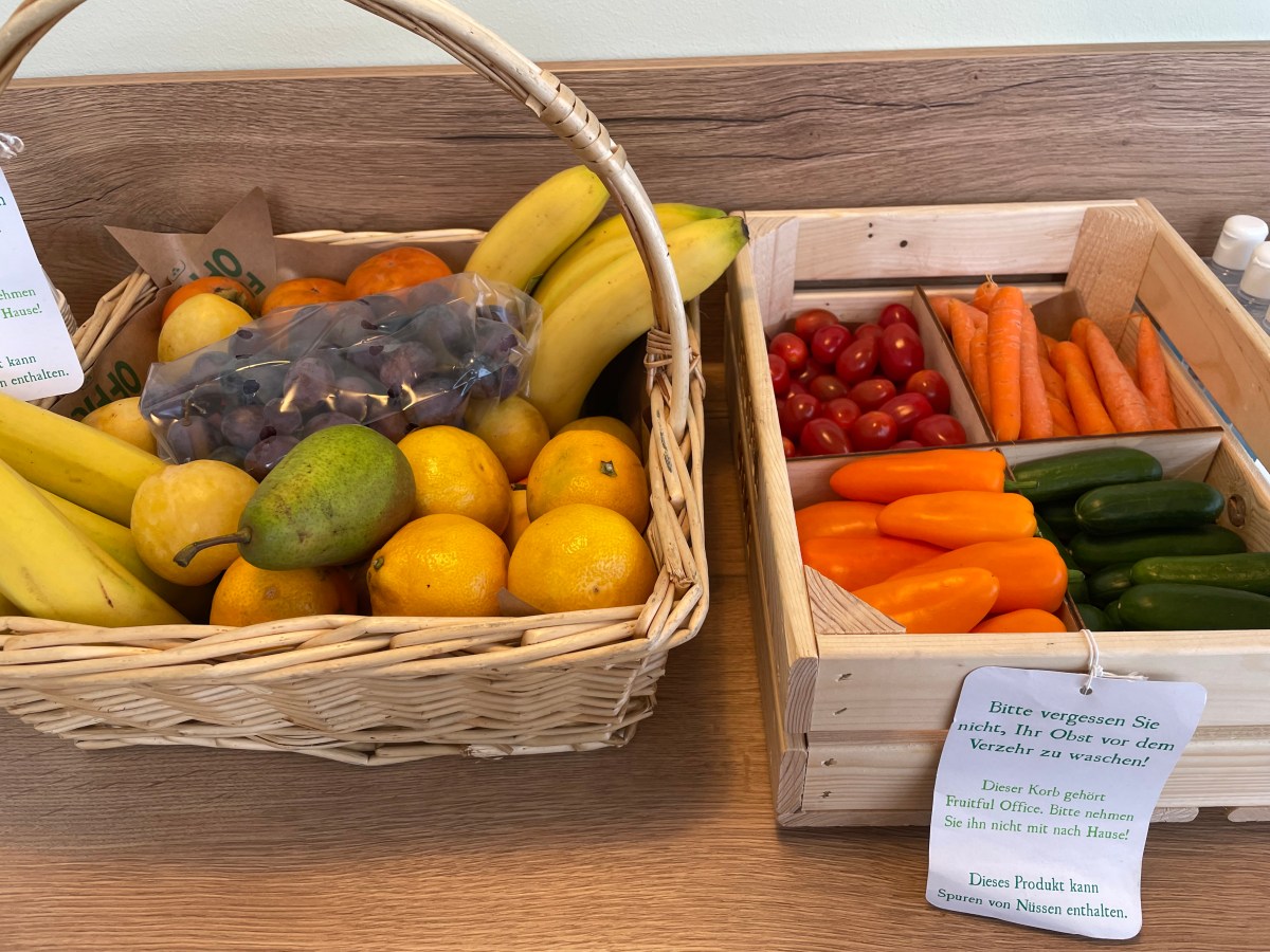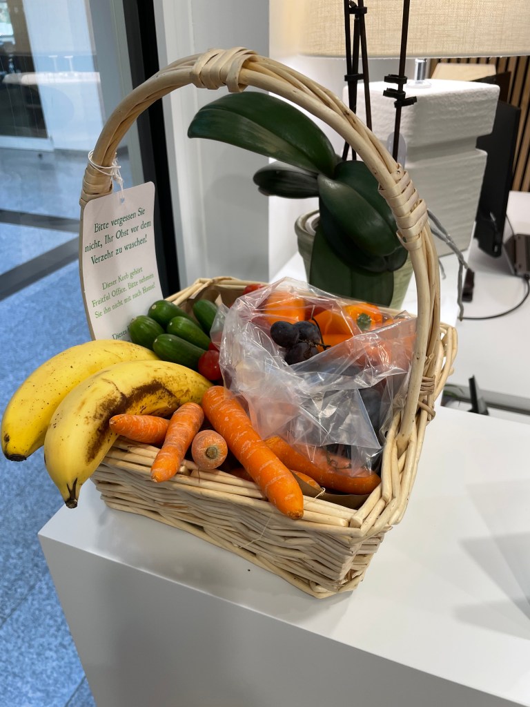 A couple of times a week, wonderful healthy snacks arrive in each lunchroom in the Phoenix Haus. This is a new service and we are all loving it. These baskets are delivered by a food service. I’m told that if there are leftovers at the end of the week, they are taken to places like the local zoo to feed to the animals there.