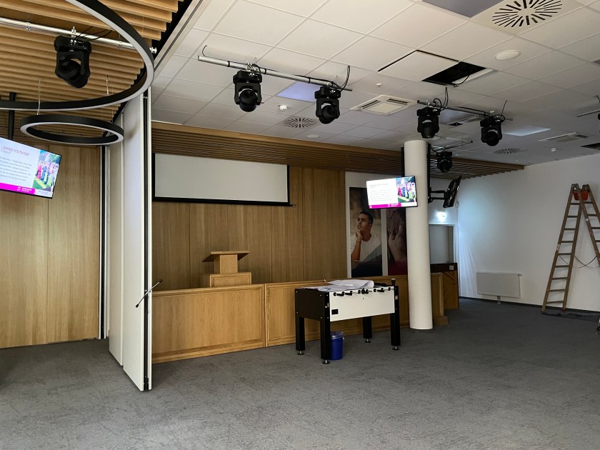 The room can be turned into a meeting place for devotionals or large gatherings.