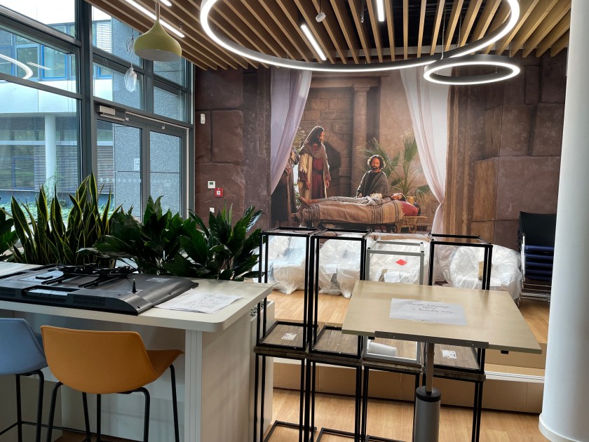 The lunch room/ assembly room / meeting room in the Phoenix is coming together bit by bit. Soon we’ll be able to move into it.