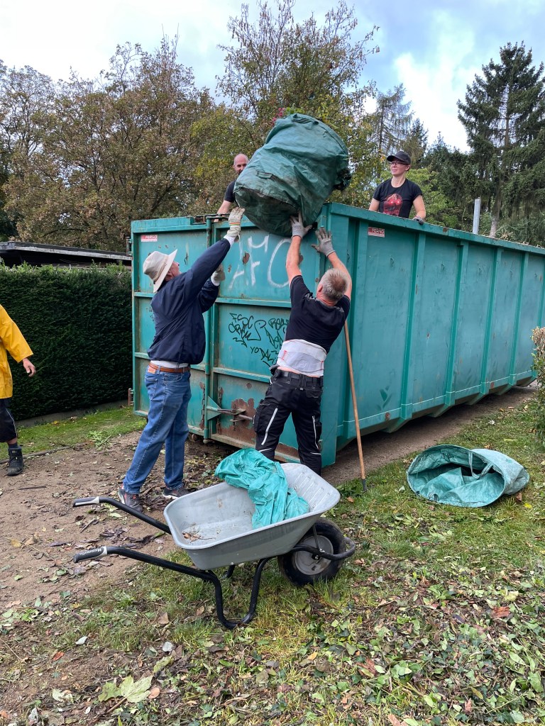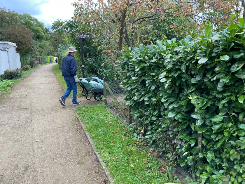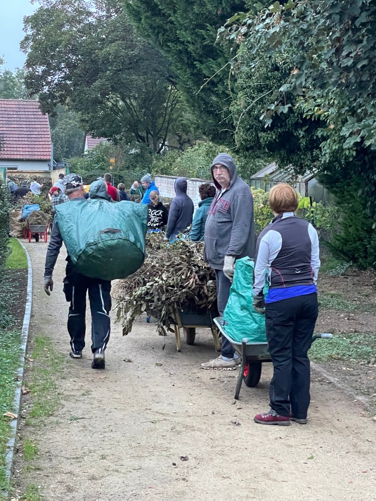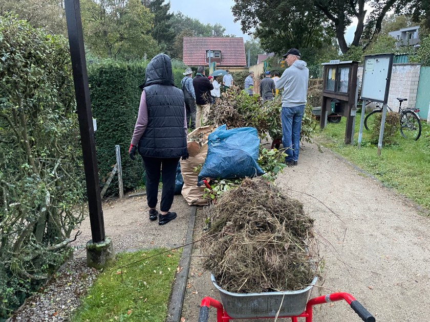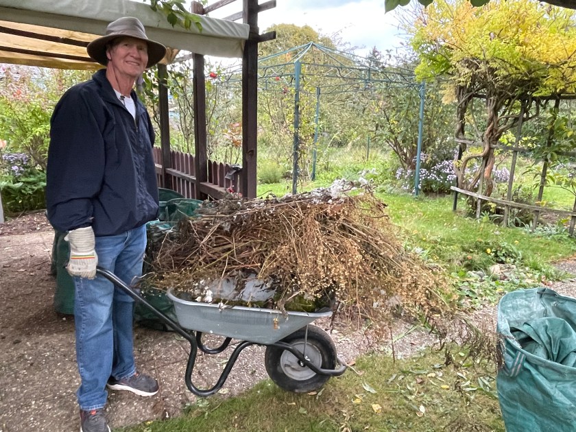 There was a line of people with full wheelbarrows behind the truck when we arrived. Everyone turned out to clean their gardens and bring their bags and barrows of stuff to the truck.