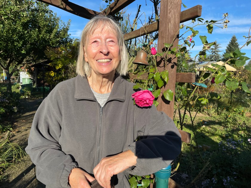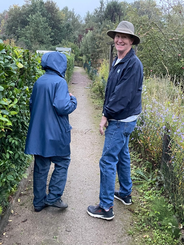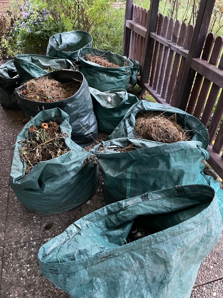 When we walked into the heart of the garden plots to Erika’s #41, she had about a dozen large refuse bags filled and ready to go. John started taking them to the truck while Erika and I kept pruning, deadheading, and cleaning out more beds. We filled more bags as John emptied them. It was supposed to rain, but there was only a light sprinkle, then it cleared and the sun came out and made everything beautiful.