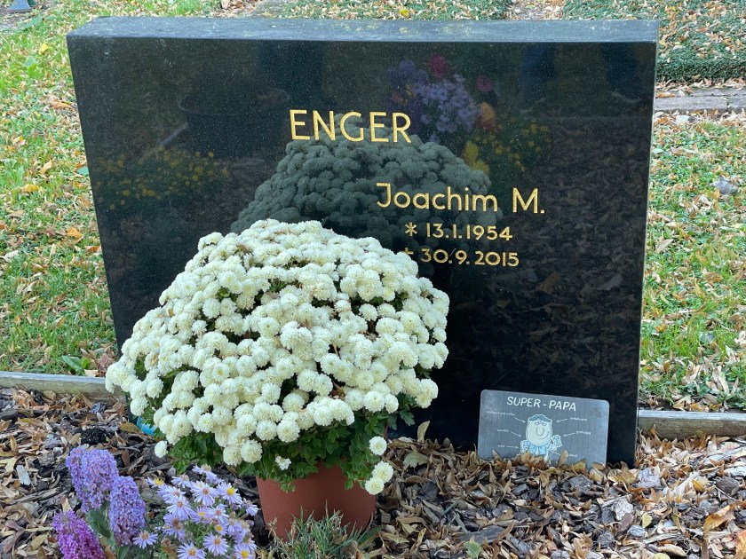 After we got done what needed to be done for now, we walked over to the cemetery across the way and went to visit her husband, Joachin’s grave. It was a beautiful fall day in the cemetery with leaves fluttering down. It was nice to spend some time with Erika.