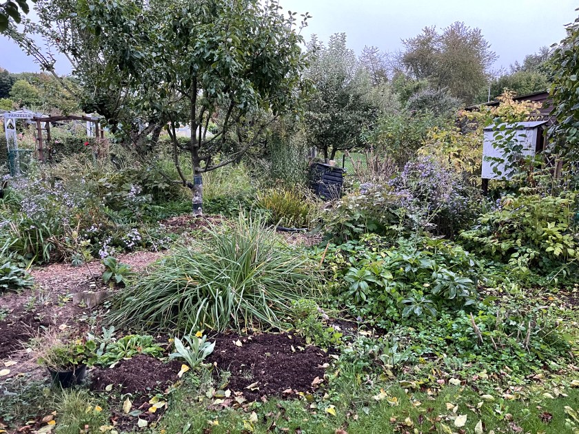 We worked for 2.5 hours. We picked tomatoes and pulled out the plants. I trimmed Iris and daylilies. This is the last season Erika will have this garden. She is giving up her rent on it after many years, and will join her son’s garden a few plots over.