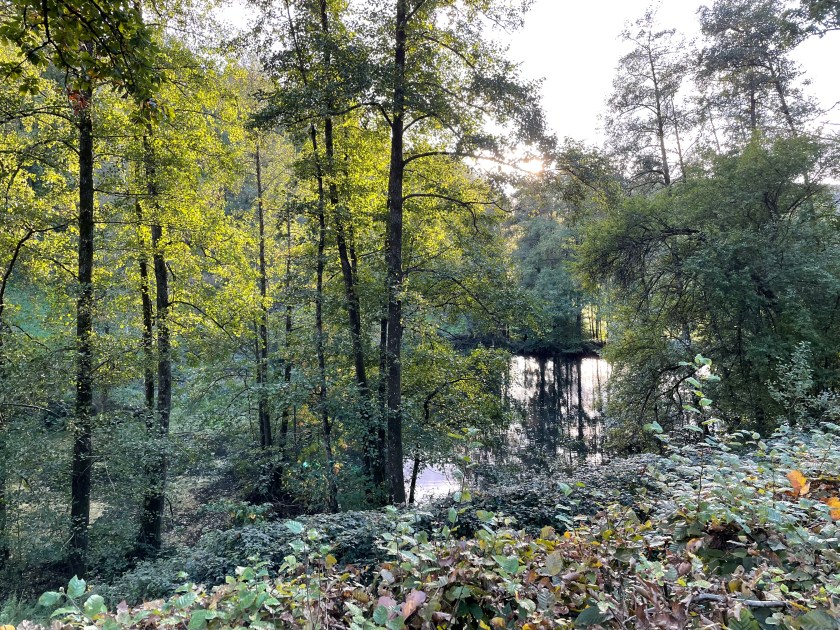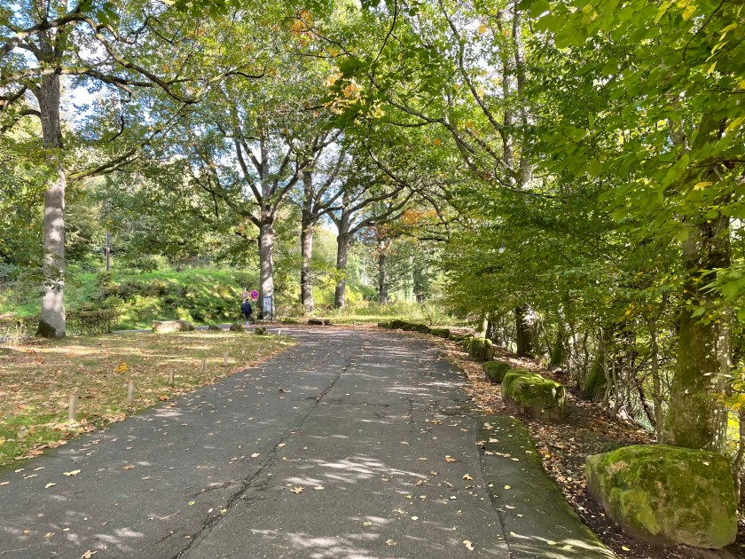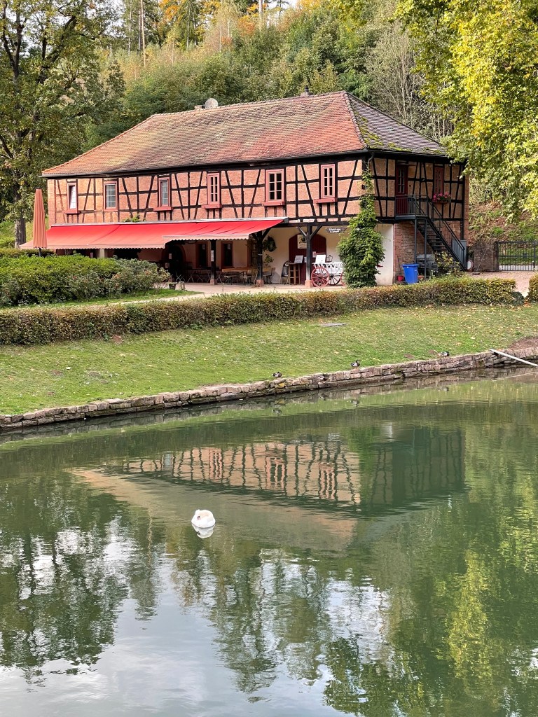 We didn’t get to go in the tall round tower. It looked like a Rapunzel tower. At the top is a library and below that is a reading room. It was really quite magical, with the pond and swans and a few ducks and the fall leaves surrounding us. There is an old building that used to be a mill house where you can make reservations to stay. An old horse stall has been made into a restaurant by the pond. There was one other building where servants lived. It all felt manageable and family-centered, not kingly or “look at me, I’m bigger and stronger than you.”
