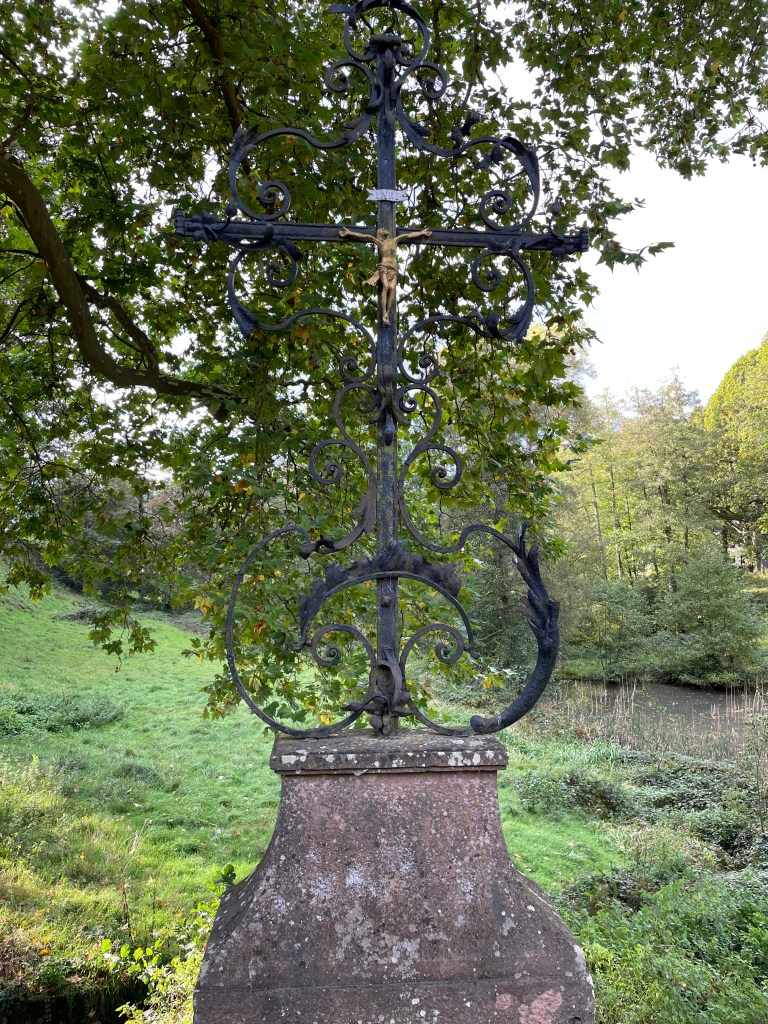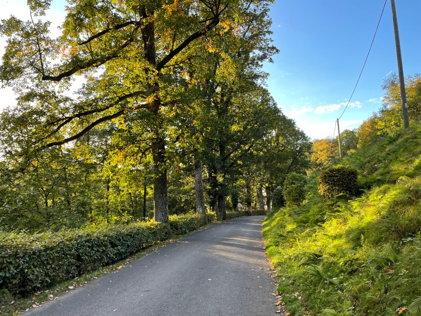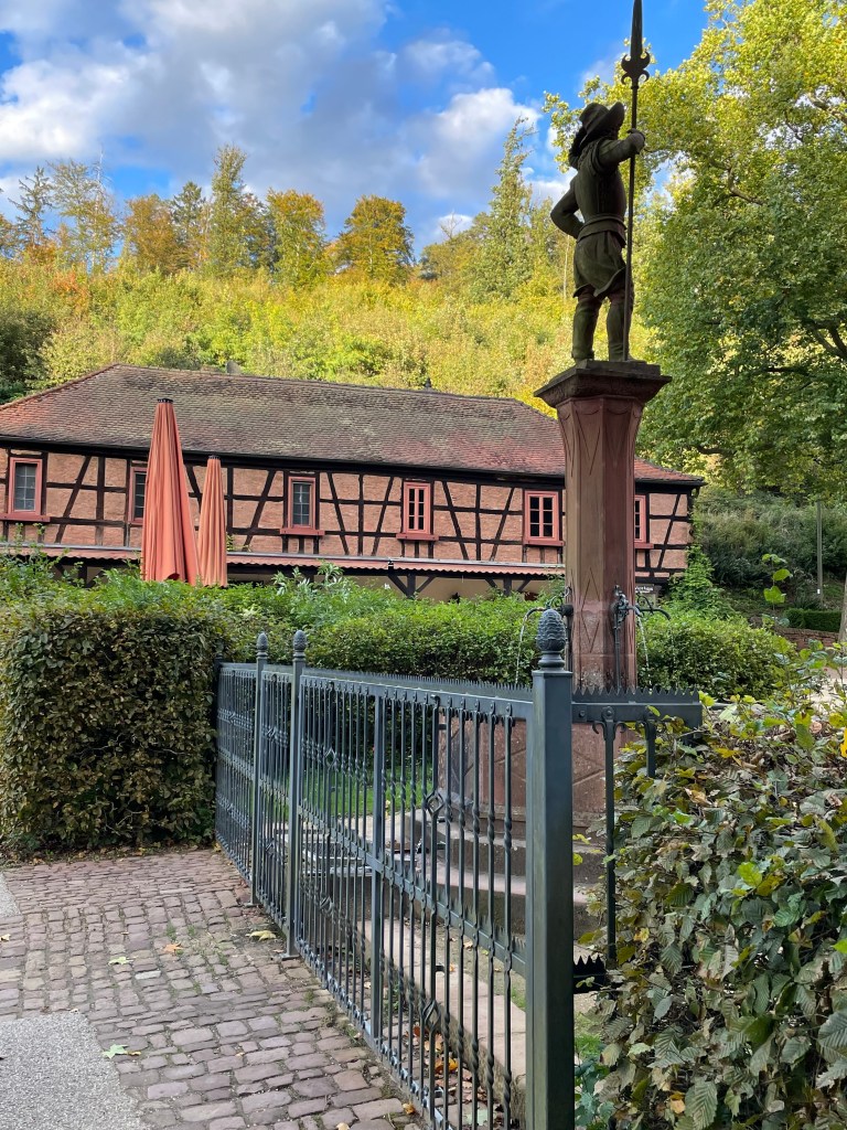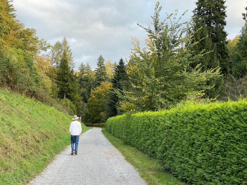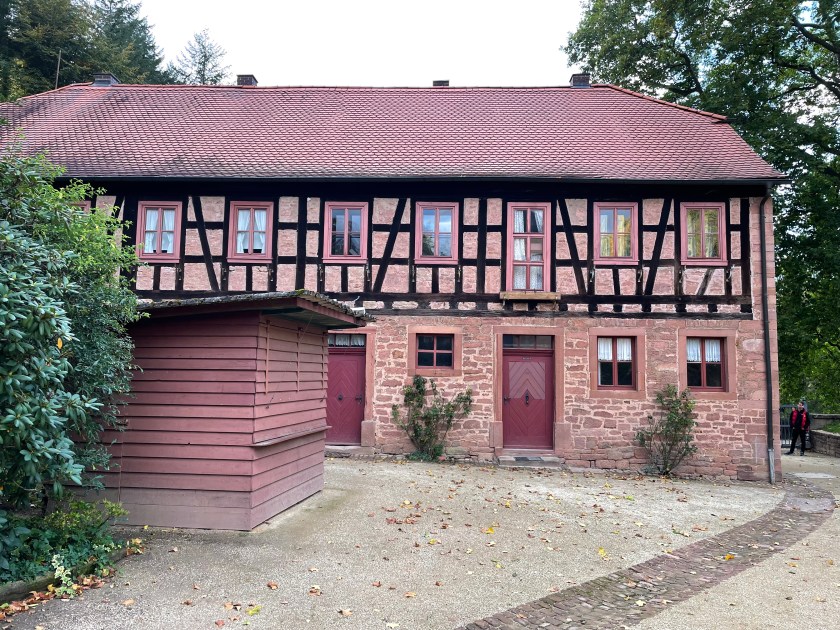 We walked from the parking lot along a path through the woods. It was peaceful and Fall leaves fluttered around us. We didn’t see any other people until we arrived at the castle and joined a group of 20 old people for the last tour of the day led by an older German gentleman.