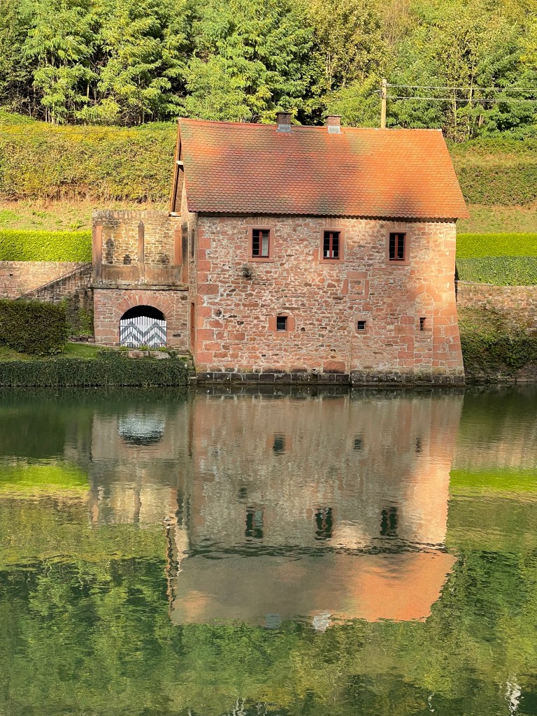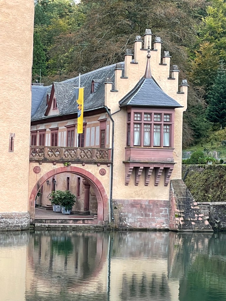 Our next stop was another castle we had on our list of places to visit. This castle was relatively unknown until it was featured in a German movie in 1957. It’s a small castle, nestled in some woods in a small town. There is a spring behind it and they had the water flow around the castle to create a moat and pond in front.