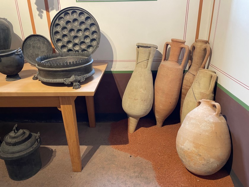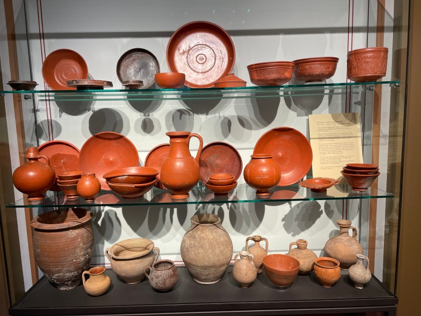 There were some very old Roman things displayed–pottery, sculpture, murals, mosaic tile floors, etc. It had a courtyard and plants like you’d find in Italy. It was interesting to wander through.