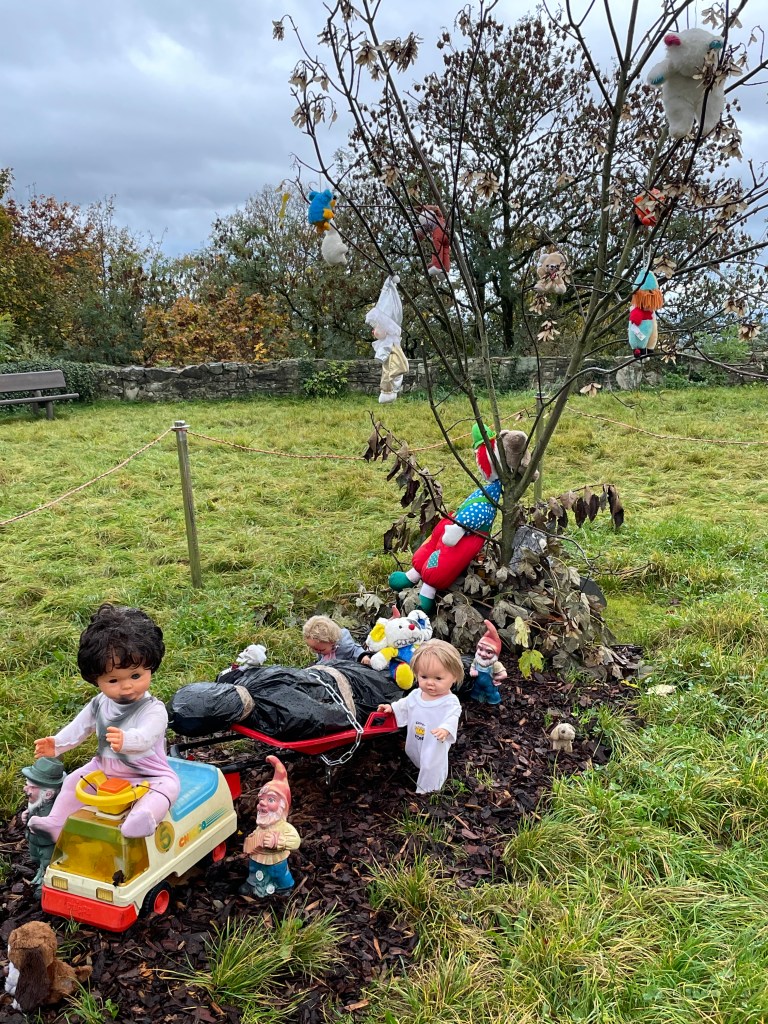 This particular Halloween display made me laugh–these little children weren’t quite sure what to think about these macabre dolls–creative in an unsettling way.