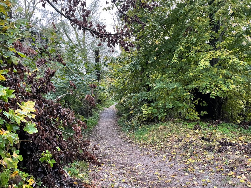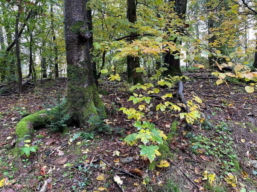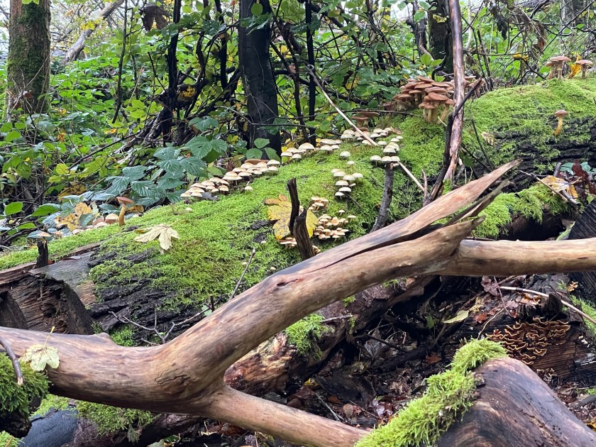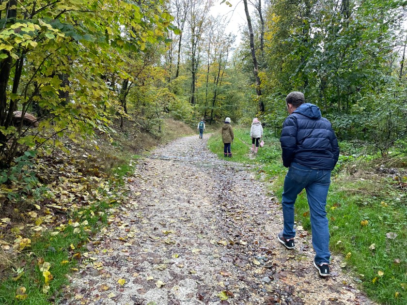 We walked up the hill in a light rain, along a dirt path through the woods. It was so beautiful and smelled so earthy with moss, mushrooms, ferns and wet leaves underfoot.