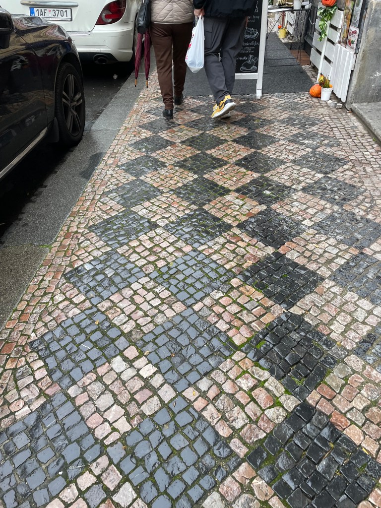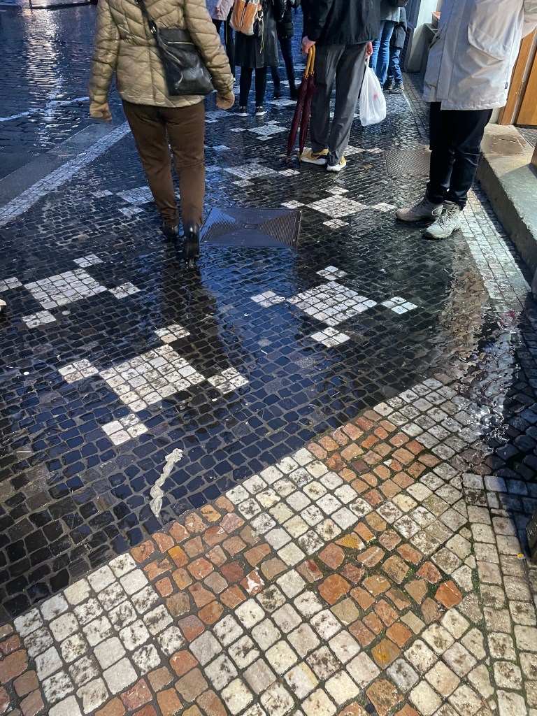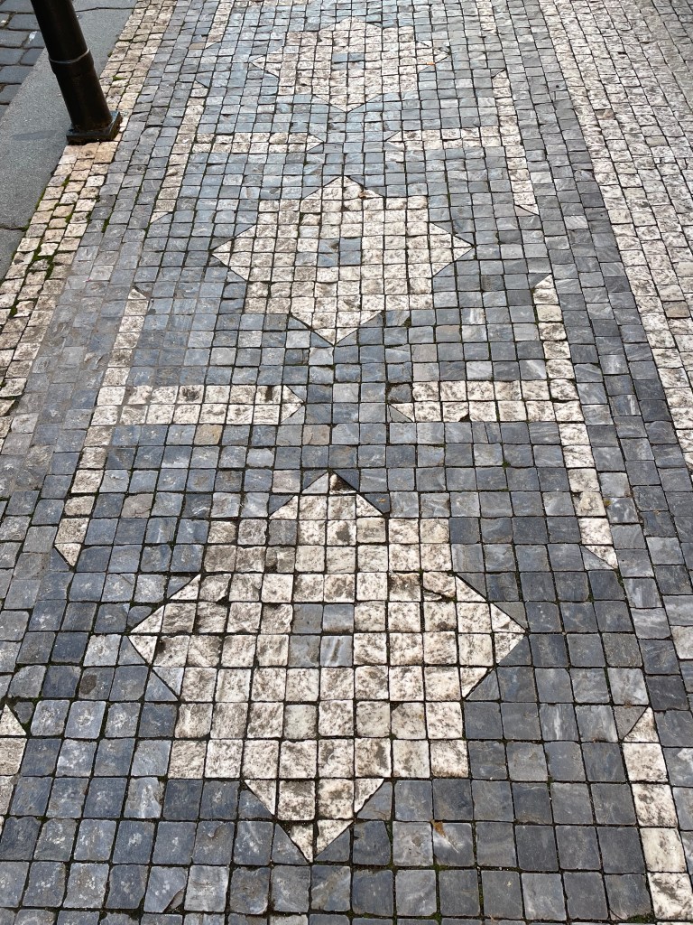 How can you not love a city where every sidewalk is laid out like a quilt?? I found it hard to know where to keep my eyes–up on the tops of the beautifully ornamented buildings, or down on the ground at my feet. Everywhere we went, the patterns changed. It was delightful! Can you name these patterns?