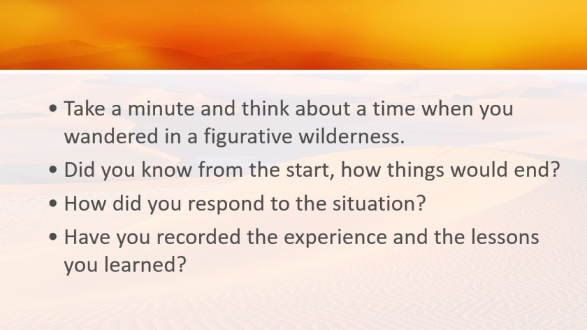 Why do these stories matter? We can look back to our spiritual forebearers and take heart. We are like them, wandering in the wilderness of affliction. We are being tested. We are experiencing trials. We don’t always know how long the journey will take. We may worry about whether we’ll achieve positive outcomes. We do not always know the course that we should travel.