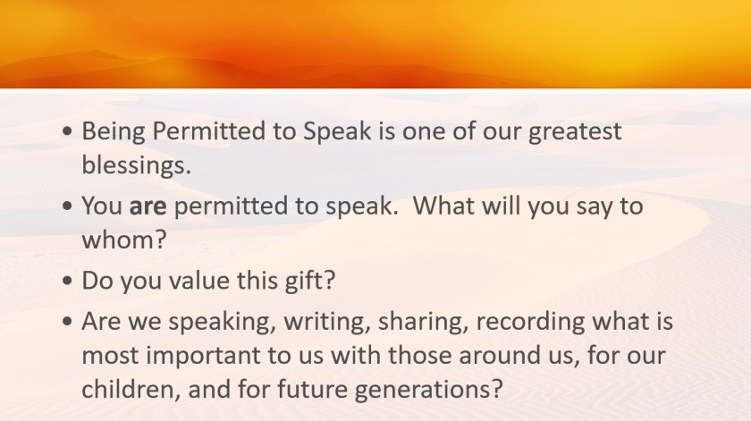 Those words also stop me in my tracks. Ye are permitted to speak. What a gift!!