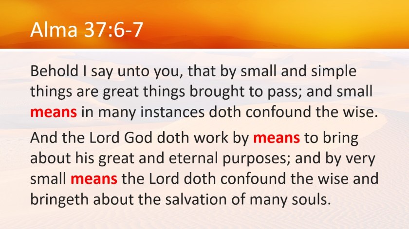 Mormon, compiling these records, uses this story to teach us about MEANS.