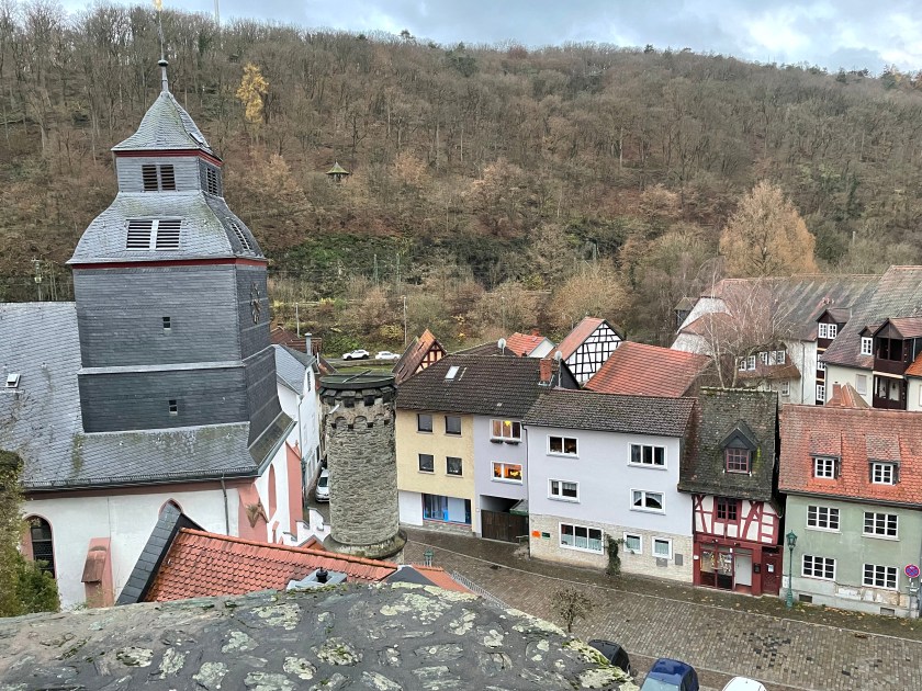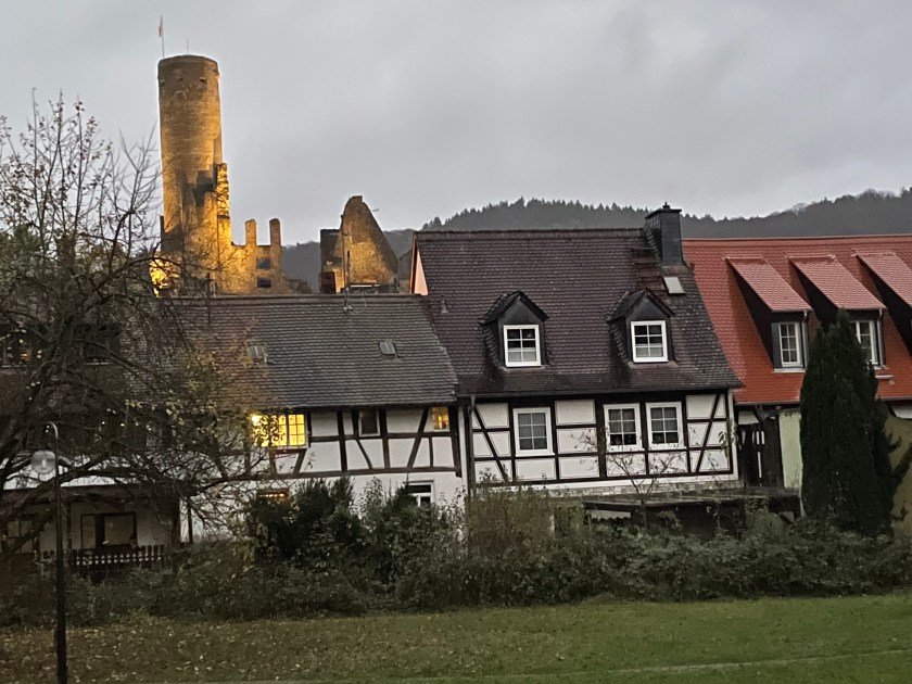After our visiting with cousin Fred’s family, we drove about 30 min over to Eppstein, another quaint old town with a castle up on top. We got there as the sun was setting and spent some time wandering and exploring this charming town set in a small narrow valley.