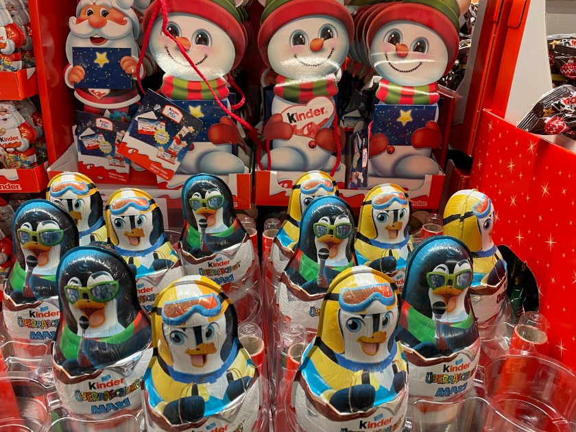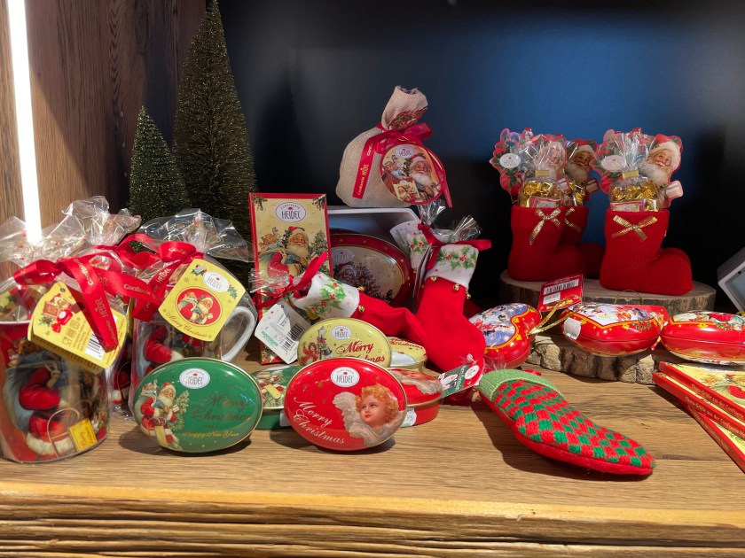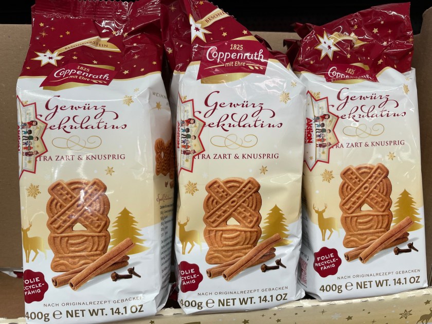Starting in October, stores start displaying Christmas goodies and treats. Here’s a sampling from a store we visited today.