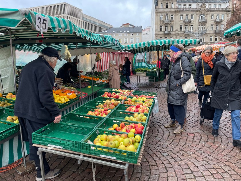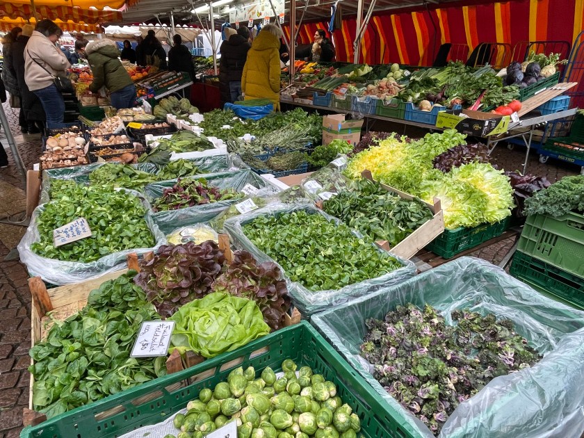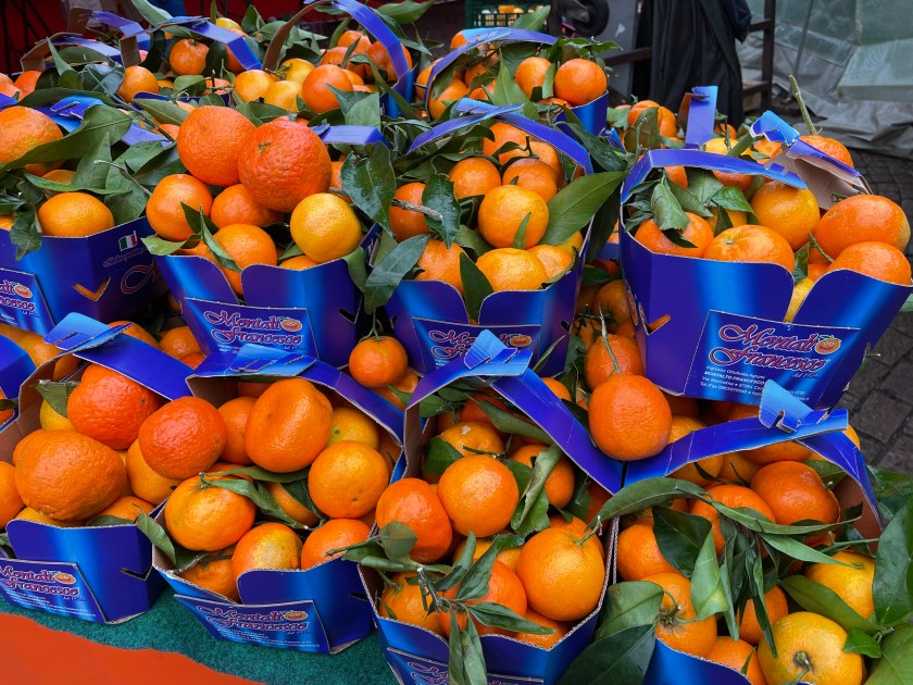 To me, these fruits and vegetables are as beautiful as all the things in the Christmas markets! These tangerines were the first to catch my eye. All of my growing up years, my brothers and I picked tangerines and sold them at the end of our driveway to earn our spending money for Christmas. Dad always advised us to leave a leaf or two on the stem to show how fresh they were. These took me right back to my childhood.