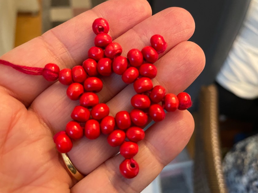 And then we made some red beaded star ornaments.