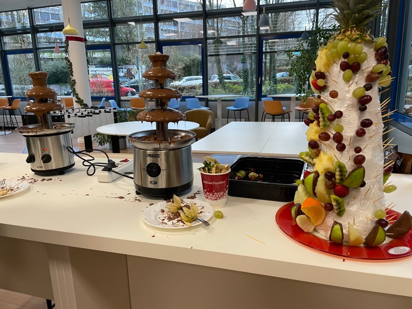 We had an employee choir sing to us, then we got to listen to our leaders share Christmas messages with us. We really enjoyed it and enjoyed getting to know them better.