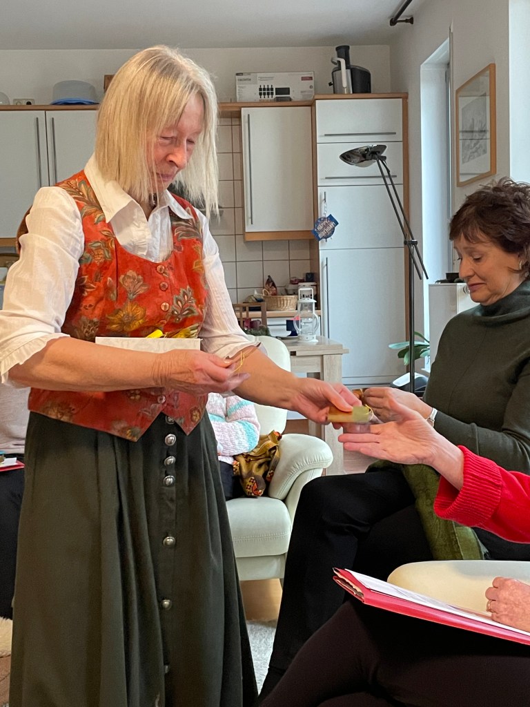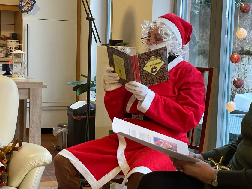 St Nicklaus read something from his book about each one of us, then we had to perform or recite something in German to receive our gift.
