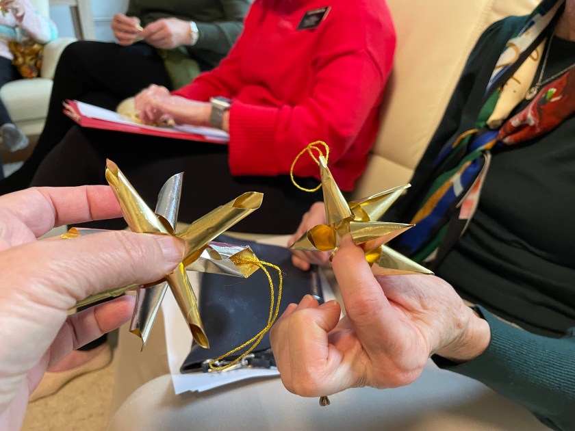 Today we had our German Christmas class with Sister Enger. She always makes things so fun for us. Today we learned how to make another ornament to hang on our trees.