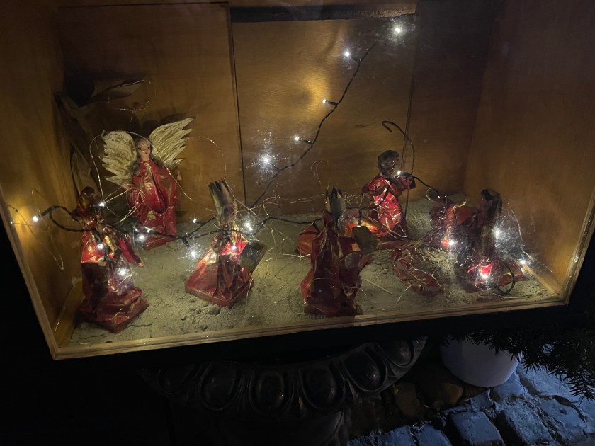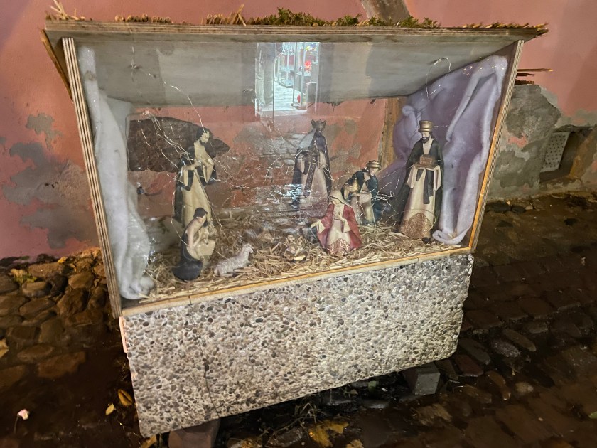 One thing I really enjoyed here was seeing the Nativities the shops displayed by their doors or in their window sills. I love the focus on the birth of Jesus.