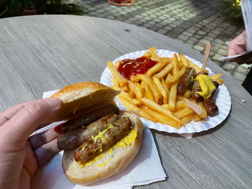 For our dinner we had traditional Nuremberger Brats. They are our favorite Brats of all. They are served on a bun or with fries.