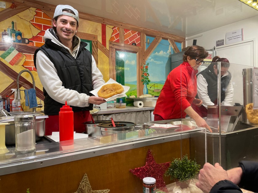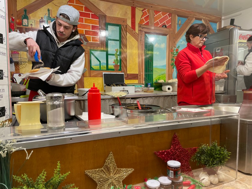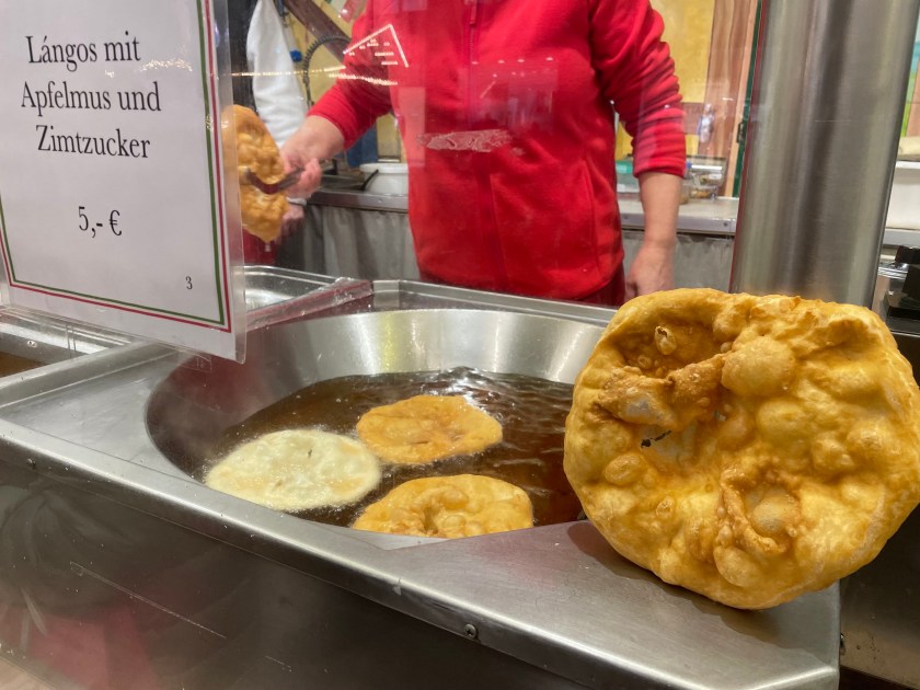 And for dessert we got these scones, called “Langos” served with different toppings. We chose the traditional applesauce and cinnamon sugar. YUM.