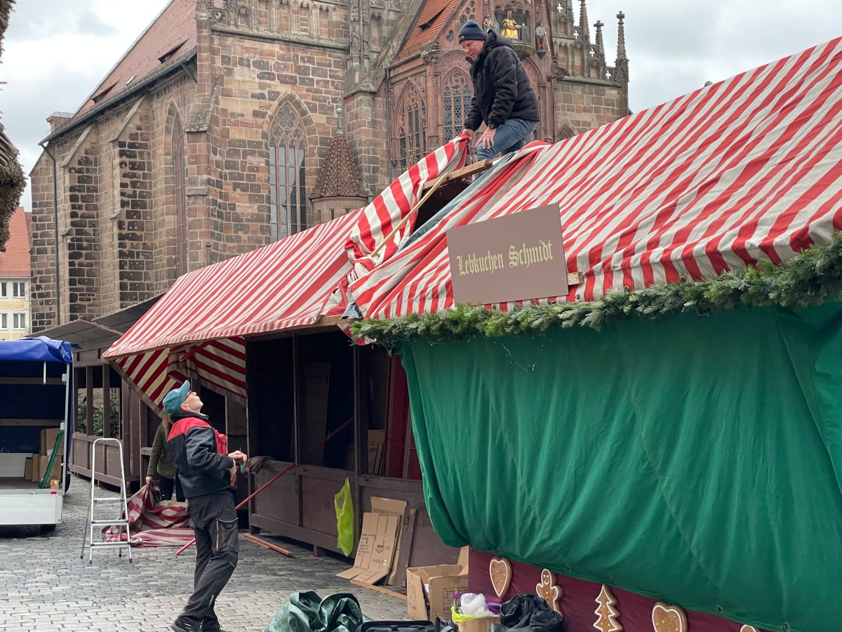 Nuremberg is famous for its Christmas Markets with the red and white striped roofs. There are several market areas here and some are still going, but most are being packed up and taken down this week. It was interesting to watch the crews disassembling the booths and packing things up.