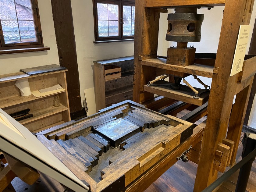 This printing press was re-created from detailed drawings he made of it.