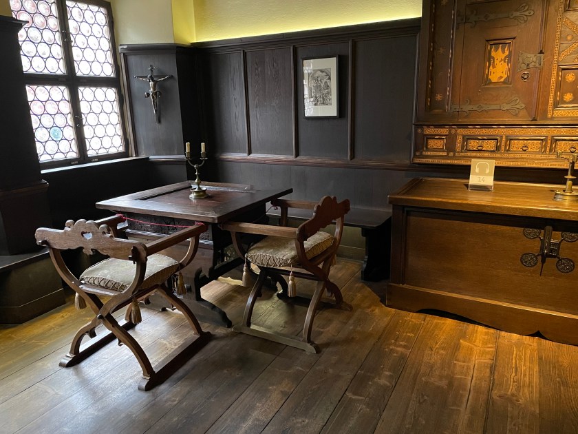 This small privy was in the kitchen, with a porta-potty sitting outside. They think Duerer used this towards the end of his life when he wasn’t well.